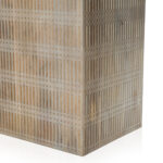 Unique linear carving with an artisan slant. Mango wood is finished in a light wash, highlighting texture and craftsmanship alike. Seats eight comfortably.